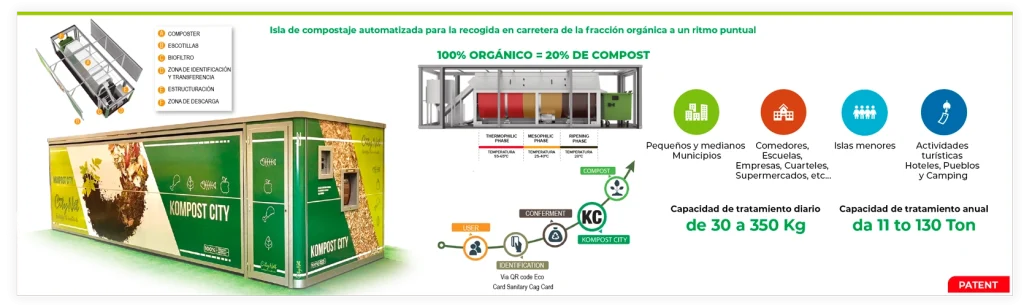 El sistema de compostaje comunitario está especialmente indicado para satisfacer las necesidades de condominios, centros comerciales, restaurantes, plazas de comidas, ya que permite recibir entre 30 y 2500 kilos diariamente.